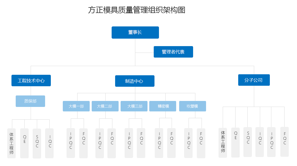 “技術(shù)展現(xiàn)實(shí)力,品質(zhì)贏得信賴”,在方正公司,技術(shù)是第一生產(chǎn)力,而質(zhì)量則是贏得客戶信賴的保障,方正的質(zhì)量團(tuán)隊(duì)攘括了進(jìn)料檢驗(yàn)、過(guò)程檢驗(yàn)、產(chǎn)品檢驗(yàn)、電極檢驗(yàn)、出貨檢驗(yàn)及質(zhì)量管理體系,在各類精密測(cè)量設(shè)備資源及具有相關(guān)資質(zhì)的質(zhì)量人員的支持下,真正意義上實(shí)現(xiàn)了從原料、過(guò)程、最終檢驗(yàn)對(duì)模具生產(chǎn)質(zhì)量的嚴(yán)格控制,并通過(guò)質(zhì)量管理體系的實(shí)施,實(shí)時(shí)監(jiān)控和提升整個(gè)公司的質(zhì)量管控程度。